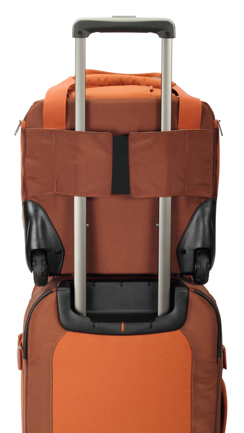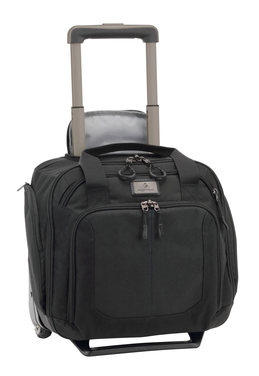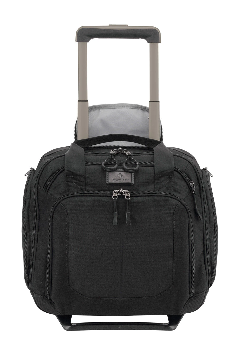 This lightweight carry-on tote is a perfect travel companion for every trip. And get this: it has an elasticized back slip panel so that you can securely stack it on your wheeled luggage. With two-way lockable zippers, multiple pockets for organization, front organization panel, and a travel-tested wheel and wheel system, the EC Wheeled Tote has durability you can count on. This wheeled tote is great for one-day or overnight trips, giving you ease of access to in-flight necessities. Durable, lightweight and smart, thats the EC Adventure Collection promise. Built tough for every journey.
